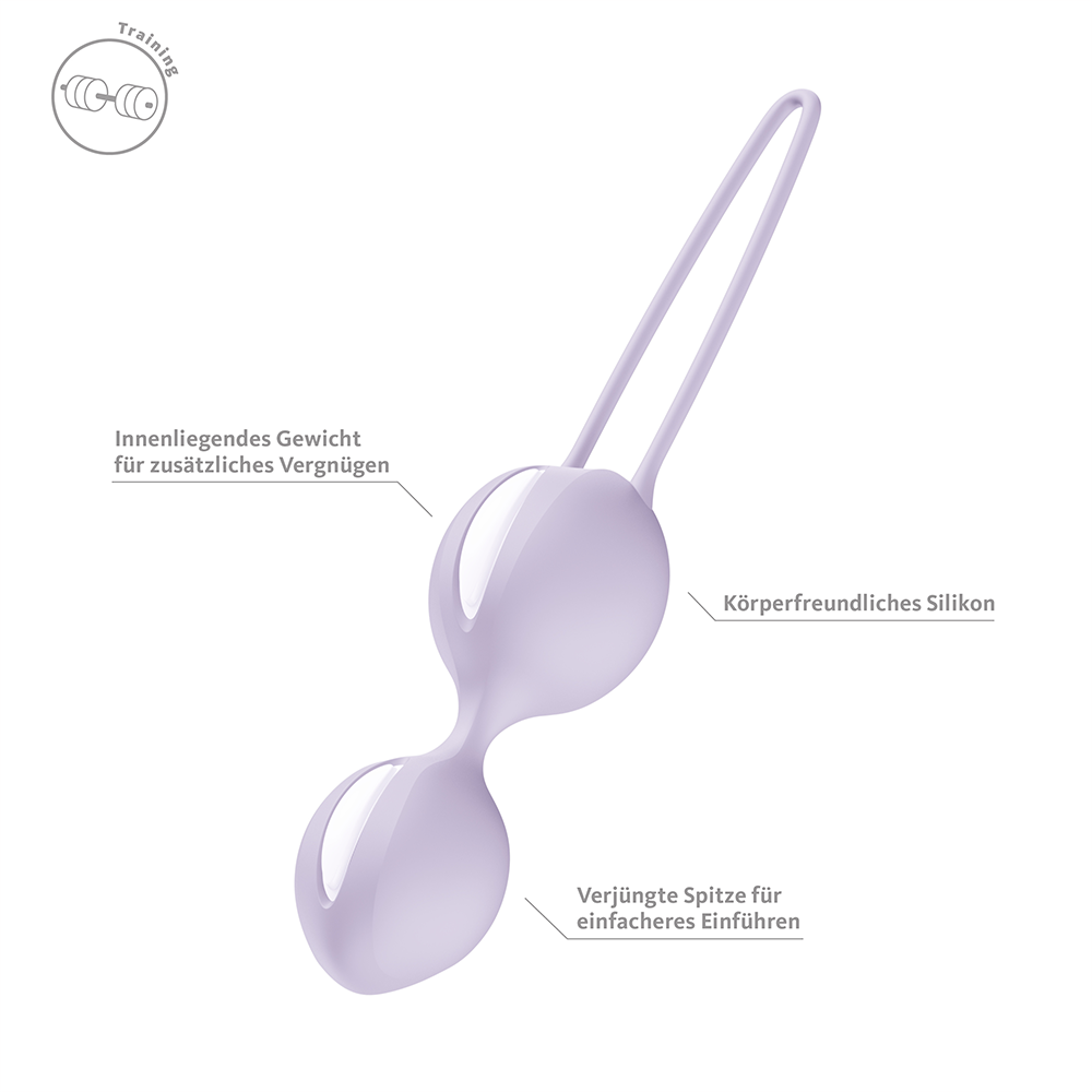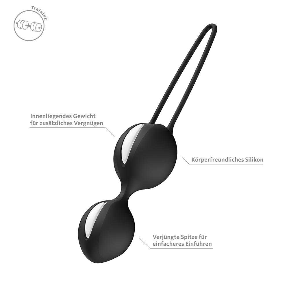 Wenn du denkst: „Von Beckenboden-Kugeln hab‘ ich schon gehört, aber schlicht keine Ahnung, wie die Dinger funktionieren“, bist du nicht allein! Zum Glück ist es easy-peasy: Führe die SMARTBALLS aus glattem, samtigem Silikon einfach mit etwas Gleitgel ein und halte sie an Ort und Stelle – mit den Muskeln deiner Vagina. Jetzt versuche es mit gezielten Übungen (Anspannen & Loslassen) oder mach‘ einfach weiter mit dem, was du gerade tust. Jede Kugel enthält ein frei bewegliches Gewicht im Inneren, das bei jeder deiner Bewegungen ins Rollen kommt und deine Muskulatur – ganz ohne Anstrengung – zum Kontrahieren bringt.